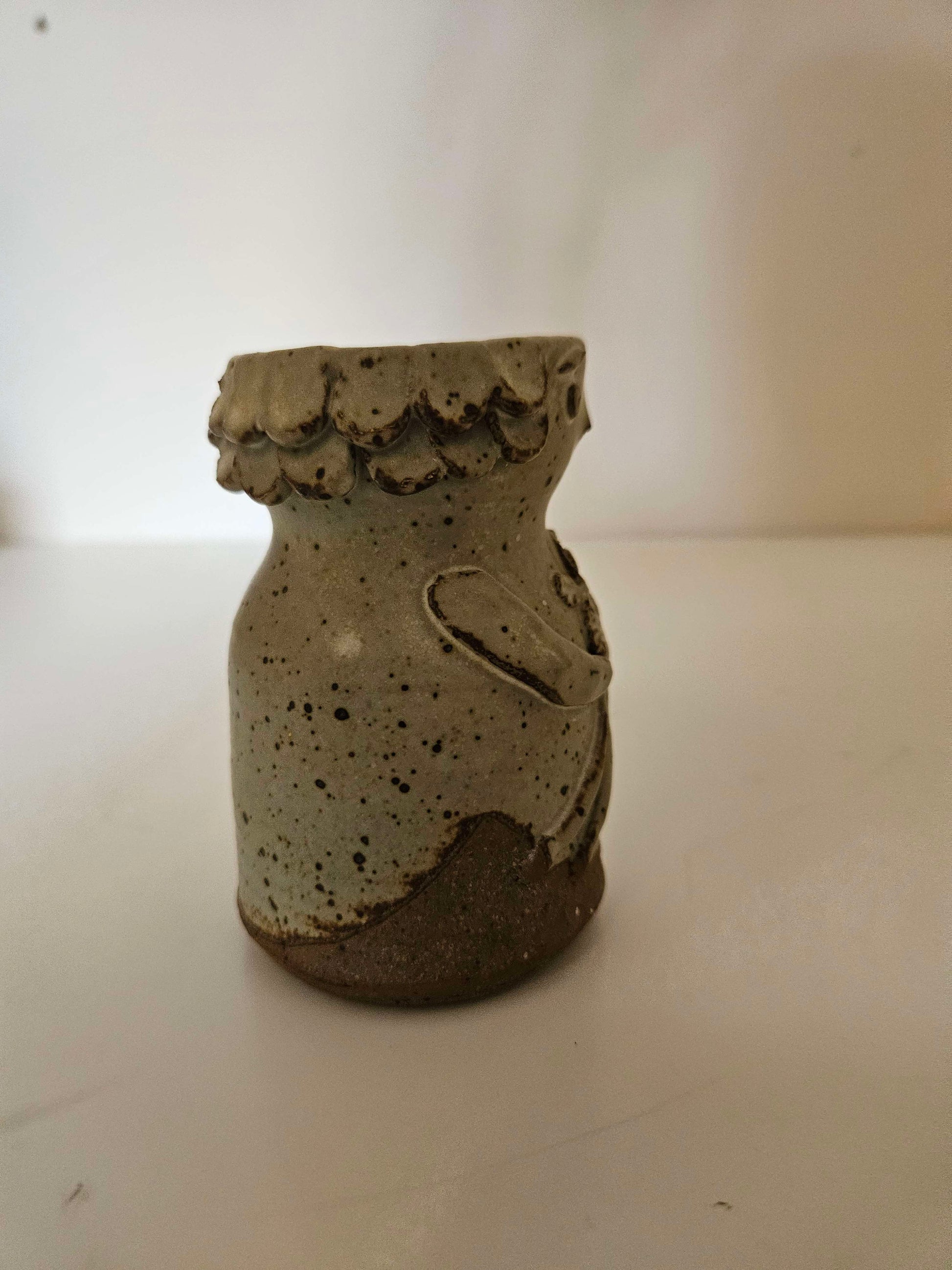 This cute little guy will bring a smile to your pottery collection.