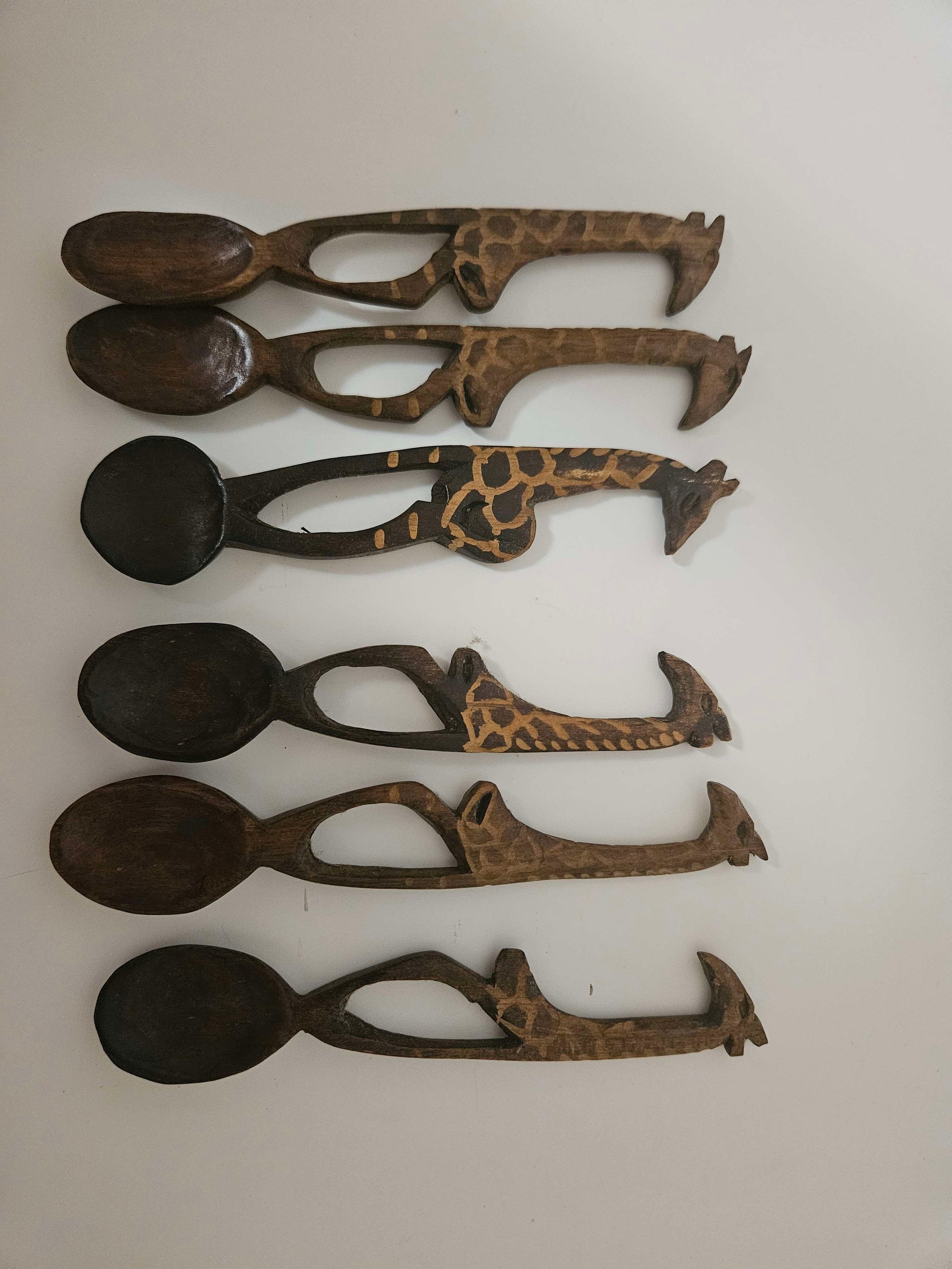 Set of 6 African Wooden Giraffe Spoons